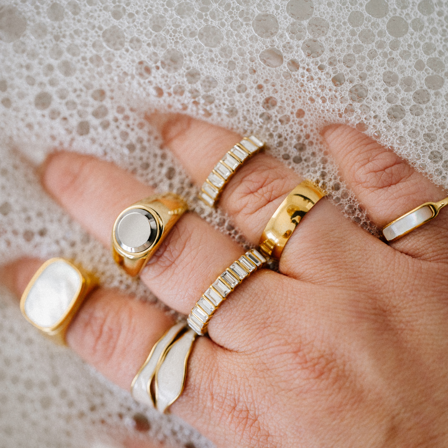 Not quite sure how to care for your Habit goodies? Scroll below for our pro tips and tricks for keeping your waterproof, tarnish-resistant jewelry good as new. 👇